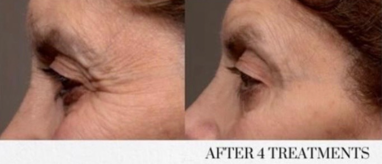Real treatment results: smoother, firmer, more refreshed-looking eye area after a full rejuvenation session.